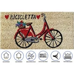 Baroni Home Paillasson Entrée Maison En Coco Avec Base En PVC, Peint à La Main, Solide Et Nettoyage Facile, 50X25X2 Cm – Tapis à Motif Vélo Rouge