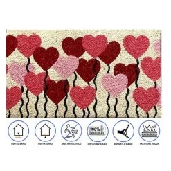Baroni Home Paillasson De Jardin En Coco Avec Base En PVC Peint à La Main Dépeignant Pelouse De Cœur 70X40X2 Cm. Facile à Nettoyer Et Ultrarésistant