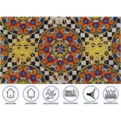 Baroni Home Paillasson De Noix De Coco Peint à La Main En Plein Air, Style Sicilien 70×40 Cm Facile à Nettoyer Et Super Résistant. Les échiquiers Et Seuls