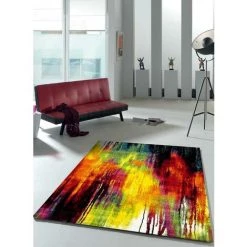 DEZENCO Tapis Salon 80×150 Cm Rectangulaire GARCA Rouge Chambre Adapté Au Chauffage Par Le Sol