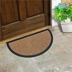 EMMEVI Paillasson D’Entrée Tapis En Caoutchouc Antidérapant Robuste Absorbant Demilune – Beige