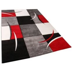 Paco Home Tapis De Créateur Contemporain à Carreaux Marbré En Gris Rouge LIQUIDATION 60×100 Cm