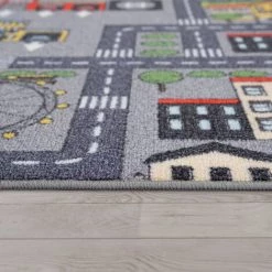 Paco Home Tapis De Jeu Tapis Pour Enfants Chambre D’Enfant Motifs Rues Avec Voiture, Gris 80×150 Cm
