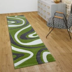 Paco Home Tapis De Salon Poils Ras Motif Ondulé Abstrait Moderne Design 3D Vert Gris 60×100 Cm