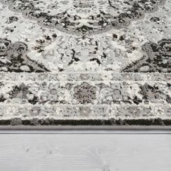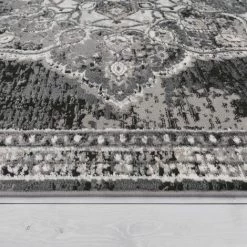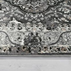 Paco Home Tapis De Salon Poils Ras Oriental Marocain Mandala Avec Bordure Noir Gris Crème 80×150 Cm