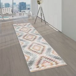 Paco Home Tapis De Salon, Poils Ras Moderne Avec Motif Losanges, Tons Pastel Colorés 70×140 Cm