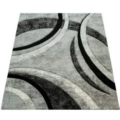Paco Home Tapis De Salon, Tapis À Poils Ras Avec Bordure Et Effet 3D, Gris Et Beige 120×170 Cm