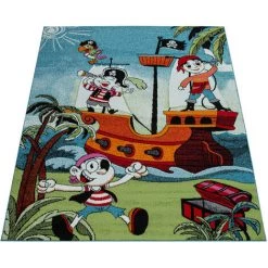 Paco Home Tapis Enfant Garçon Chambre Enfant Tapis Jeux Poils Ras Bateau Pirate Coloré 120×170 Cm