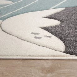 Paco Home Tapis Enfant Chambre Enfant Poils Ras Étoiles Pois Montagnes Bleu Blanc Gris 80×150 Cm