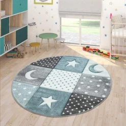 Paco Home Tapis Enfant Couleurs Pastel À Carreaux Pois Cœurs Étoiles Blanc Gris Bleu Ø 160 Cm Rond