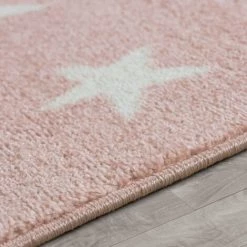 Paco Home Moderne Poils Ras Tapis Enfant Motif Étoilé Chambre D’Enfant Pastel Rose Blanc 120×170 Cm
