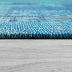 Paco Home Tapis Poils Ras Patchwork Salon Moderne Aspect Vintage Floral Bleu Turquoise 80×250 Cm