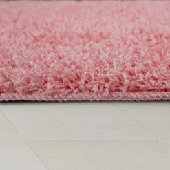 Paco Home Tapis Salle De Bain Moderne Uni Poils Longs Tapis De Bain Antidérapant Rose 60×100 Cm