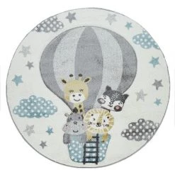 Paco Home Tapis Chambre Enfant Adorable Montgolfière Nuages Joyeux Animaux Pastel En Crème 80×150 Cm