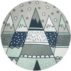 Paco Home Tapis Chambre Enfant Tapis De Jeux Tapis Bébé Losanges Étoiles Gris Bleu Blanc 80 Cm Rond