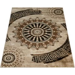 Paco Home Tapis Classique à Motifs Ornements Circulaires Chiné Moucheté Marron Beige Noir 60×100 Cm