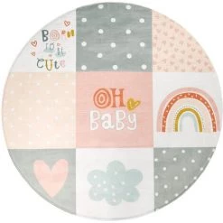 Paco Home Tapis Chambre Enfant Tapis De Jeux Tapis Bébé Arc-En-Ciel Cœur Blanc Cassé Rose 80 Cm Rond