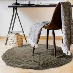 THEDECOFACTORY NEO YOGA – Tapis Rond à Poils Longs Extra-doux Gris Foncé Diam.120 – Gris Foncé