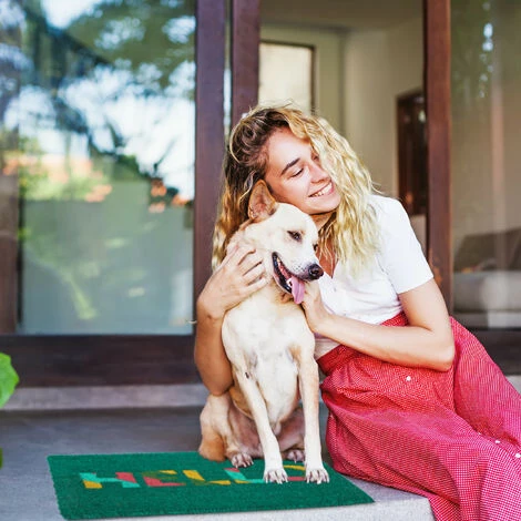 Amusez vosamis dès la porte d’entrĂ©e grâce Ă ce paillasson en coco. L’inscription chic »Hello » convainc dans toutes les entrĂ©es. Grâce Ă sa structure solideen fibre de coco et son dessous en PVC antidĂ©rapant, ce paillasson convientĂ©galement pour l’extĂ©rieur, sur le balcon ou dans le jardin. ProtĂ©gez votreappartement de la saletĂ© avec ce paillasson pratique. Grâce aux fibresnaturelles, ce tapis d’extĂ©rieur chic est aussi robuste et durable.