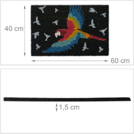 Cepaillasson d’entrée à motif décoratif permet de garder votre intérieur propre.Le tapis en fibres de coco résistant aux intempéries convient aussi bien enintérieur qu’en extérieur. Le dessous antidérapant permet au tapis de resterstable sur le sol lorsque l’on marche dessus. Le design attrayant du paillassonconvainc en plus de ses propriétés pratiques : Le beau motif de perroquet meten valeur votre entrée et est l’idée cadeau parfaite pour les amoureux de lanature et les amateurs d’oiseaux.
