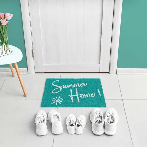 Avec ce paillasson coco original avec inscription «Summer Home», vous mettez un sourire sur le visage de vos invités avant même qu’ils n’ouvrent la porte et vous les accueillez de manière estivale. Cependant, le paillasson n’est pas seulement une attraction visuelle. Ses fibres de coco naturelles le rendent de plus robuste et durable. La surface antidérapante en PVC permet au tapis de rester stable sur le sol lorsque l’on marche dessus. Votre entrée restera propre. Le paillasson résistant aux intempéries peut être placé à l’intérieur et à l’extérieur.