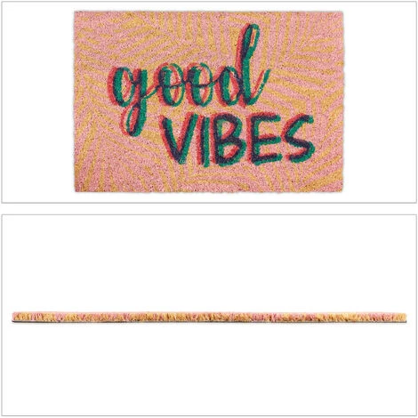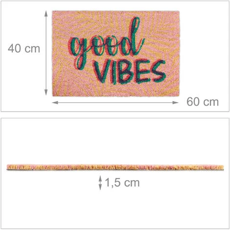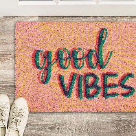 Grâce à cepaillasson original avec inscription Good Vibes, vous mettrez un sourire sur levisage de vos invités avant même qu’ils n’ouvrent la porte. Mais le paillassonn’attire pas seulement l’attention. Les fibres naturelles de noix de cocorendent le tapis de porte robuste et durable. Cette matière première écologiquese caractérise par ses propriétés de résistance aux intempéries et donne aupaillasson un aspect naturel. Le dessous est en PVC antidérapant, de sorte quela semelle de la chaussure reste à sa place d’origine.