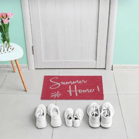 Avec ce paillasson original avec inscription «Summer Home», vous mettez un sourire sur le visage de vos invités avant même qu’ils n’ouvrent la porte et vous les accueillez de manière estivale. Cependant, le paillasson n’est pas seulement une attraction visuelle. Ses fibres de coco naturelles le rendent robuste et durable. La surface antidérapante en PVC permet au tapis de rester stable sur le sol lorsque l’on marche dessus. Votre entrée restera propre. Le paillasson résistant aux intempéries peut être placé à l’intérieur et à l’extérieur.