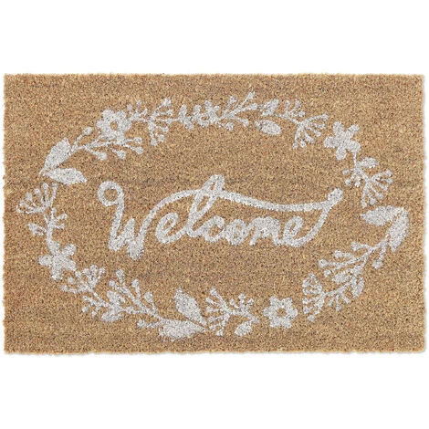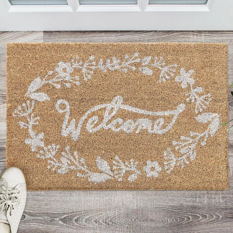 Accueillez vos invités comme il se doit grâce à ce joli paillasson ! Avec son design floral et son inscription accueillante, il saura faire sourire vos convives. Fabriqué en fibres naturelles de coco, en PVC et en caoutchouc, il est à la fois robuste et durable. La fibre de coco est une matière première écologique très résistante aux intempéries et qui donne au paillasson un aspect naturel. Enfin, le dessous en PVC antidérapant assure un maintien sûr du tapis au sol.