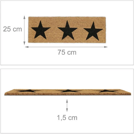 Ce paillasson en fibres de coco décoratif vous permettra d’accueillir chaleureusement vos invités sans vous soucier de la propreté de votre intérieur. Outre son style épuré et ses étoiles décoratives qui plairont à l’oeil, la composition de ce tapis le rend robuste et résistant. La fibre de coco est une matière naturelle, ce qui confère à ce paillasson non seulement un aspect authentique, mais le rend également plus résistant aux intempéries. Ainsi, il peut être utilisé aussi bien en intérieur qu’en extérieur. Enfin, grâce à son dessous en PVC antidérapant, votre tapis restera bien en place.