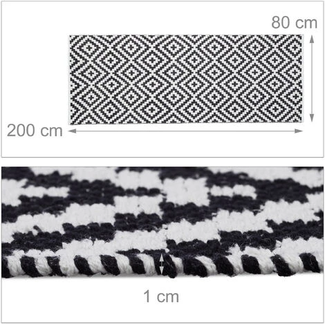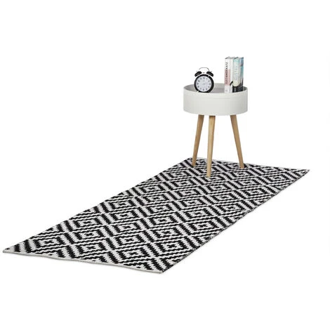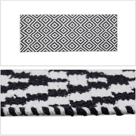Ce tapis de couloir tissé à la main procure un sentiment agréable lorsque l’on entre dans la pièce. Les motifs géométriques en noir et en blanc dans le style ethnique font penser à des motifs aztèques. Le tapis de couloir est disponible en trois tailles différentes. Un revêtement antidérapant sur le dessous du tapis réduit les risques de glissade. Par conséquent, vous pouvez l’utiliser sur tous les types de sol.