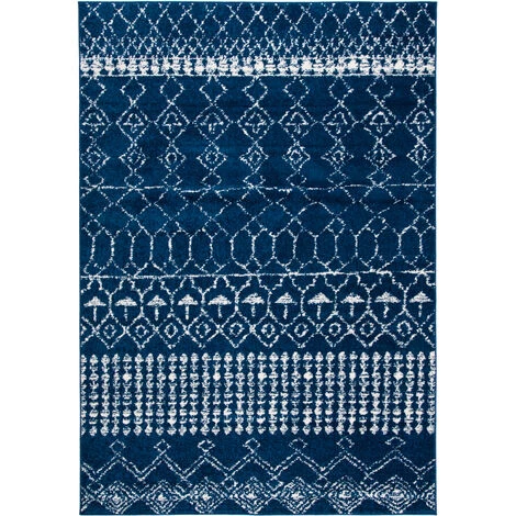 Tissé à la puissance Tapis d’intérieur / Bleu Marine & Ivoire / Polypropylène / 160 X 229 cm / Passez régulièrement l’aspirateur et épongez délicatement les taches et nettoyez-les immédiatement avec un détergent doux ou un nettoyant pour tapis, puis rincez abondamment et séchez. Un nettoyage professionnel est recommandé pour les taches et saletés tenaces.