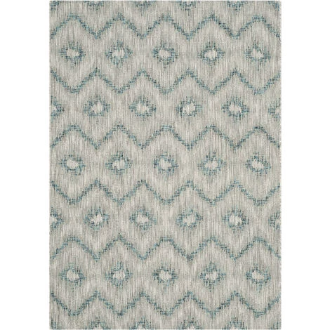 Tapis D’intérieur/extérieur Contemporain Tissé à La Puissance, Collection Cour, CY8463, En Gris & Bleu, 122 X 170 Cm Par SAFAVIEH – Gris & Bleu