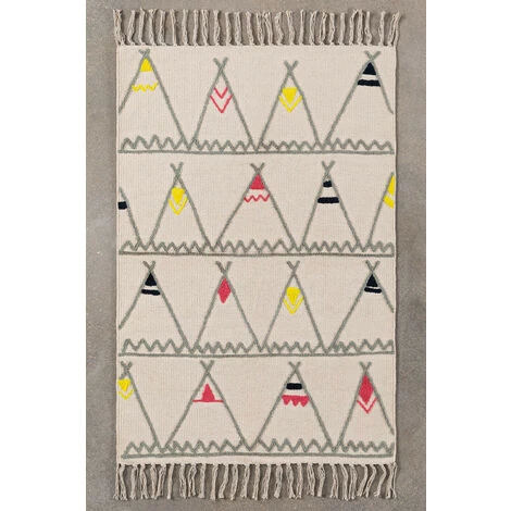 Les tapis procurent de la chaleur, protègent le sol et isolent du froid et du bruit. Pour cette raison, ils sont le complément décoratif et fonctionnel, parfait pour la chambre des enfants. Le tapis Witko Kids est composé à 100% de coton, avec des surfaces antidérapantes sur le dessous pour que personne ne glisse et offre un design aux motifs de tipis indiens qui lui donne une touche chaleureuse et cosy. Polyvalent et original, c’est le complément parfait que vous pouvez combiner sans problème avec le reste de la décoration des enfants. Nous recommandons un nettoyage régulier avec un aspirateur et un lavage à la main, en évitant l’utilisation de produits chimiques. Nous vous rappelons que les produits textiles peuvent présenter de petites variations dans leur motif et/ou leurs mesures. Dimensions (Hauteur x Largeur x Profondeur): 111,5 cm x 63,5 cm x cm IMPORTANT : Le service standard porte-à-porte ne comprend pas la livraison et la collecte des marchandises au domicile du client, qui sont à la charge de ce dernier. Il est possible que le livreur aide volontairement à la livraison de la marchandise (ceci est totalement volontaire pour le livreur et la société de transport et ne relève pas de la responsabilité de Sklum).L’assemblage n’est pas non plus inclus.