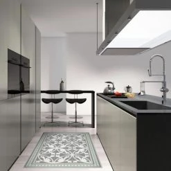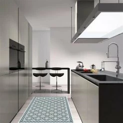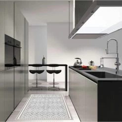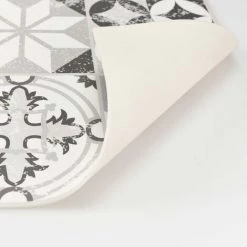 MATTEO Tapis Intérieur Extérieur En Vinyle Carreaux De Ciment Feuilles 90 X 60 Cm Gris – Gris