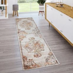 Paco Home Tapis De Salon Poils Ras Vintage Esthétique Orientale Rouge Blanc Cassé Bleu 80×300 Cm