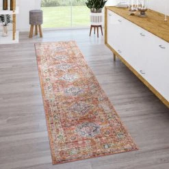Paco Home Tapis De Salon Poils Ras Vintage Motif Orient Avec Bordure Moderne Rouge Jaune 60×100 Cm