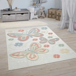 Paco Home Tapis Enfant Chambre D’Enfant Tapis De Jeux Fille 3D Fleurs Papillons Coloré 80×150 Cm