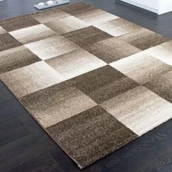 Paco Home Tapis Design Élégant Lignes Douces Poils Ras Brun Crème Noir Chiné LIQUIDATION 80×150 Cm