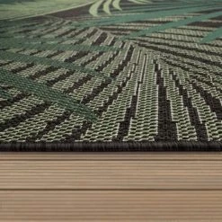 Paco Home Tapis Exterieur Terrasse Salon Cuisine Boho Fleuri Motif Palmiers Vert Noir 60×100 Cm