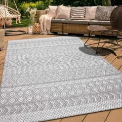 Paco Home Tapis Intérieur & Extérieur Balcon Terrasse Cuisine Motif Vagues Moderne Beige 120×160 Cm