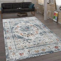 Paco Home Tapis Poils Ras Salon Bordure Design Oriental Aspect Usé Moderne Bordure Coloré 80×150 Cm