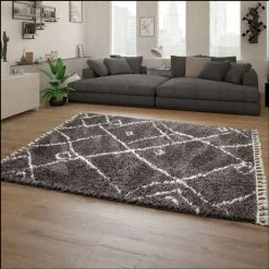 Paco Home Tapis Shaggy Tapis De Salon Poil Long Effet 3D Motif Abstrait Moelleux Gris 60×100 Cm