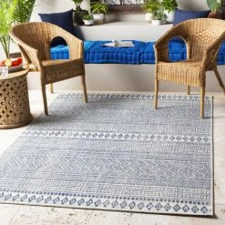 SURYA – Tapis Extérieur Terrasse Ou Balcon – Géométrique Bohème – MIA – 130x180cm – Bleu Et Blanc