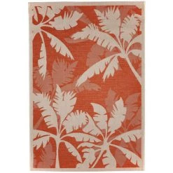 DELADECO Tapis Plat Pour Terrasse Et Intérieur Floral Ferrare Orange 135×190 – Orange