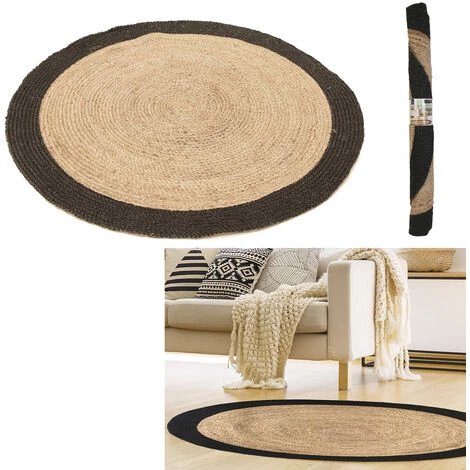 Chaleur et design seront au rendez-vous dans votre déco avec ce tapis rond. – Diamètre : 120 cm – Design authentique – Composition : Textile – Finition : Bord noir – Design bicolore