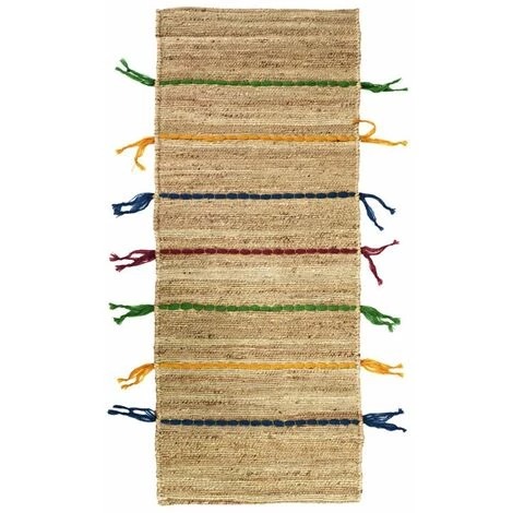 Tapis En Jute Avec Tresses En Laine Multicolores 50×150 – Multicolore