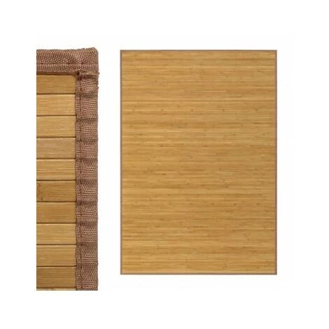 Très beau tapis en bambou couleur naturelle. Dos du tapis avec picots en PVC. Bords en polypropylène.